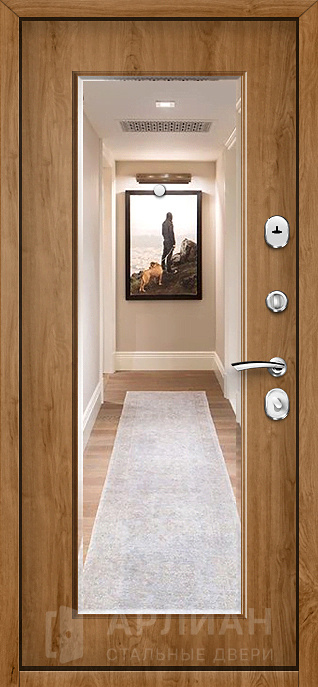 Входная дверь с зеркалом и дубовой отделкой №74