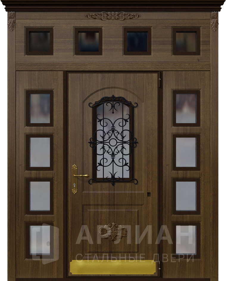 Фото «Двустворчатая дверь со стеклом и кованной решеткой №2»